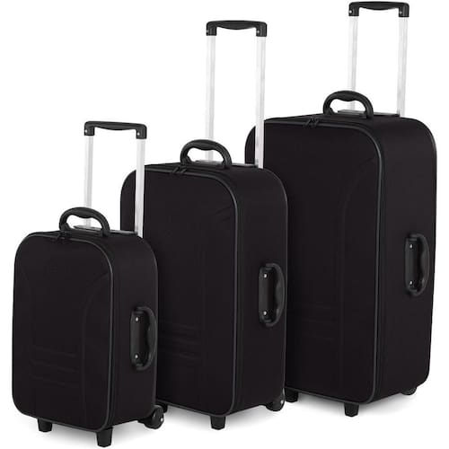 Conjunto Mala De Viagem Com 3 Peças Medidas Anac Cor: Preta Parte Externa: -logo FL Bags -zíper com furo Passante -estrutura Revestida em Poliéster -alça de Mão Superior e Lateral -carrinho De 1 Estágio -carrinho Alumínio -2 Duas Rodinhas fixas PVC