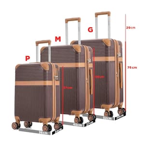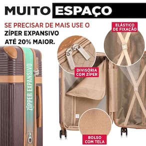 Conjunto Mala Viagem Santino Krabi Pequena, Média e Grande Cor: Bronze Conjunto de Malas Krabi 3 Peças Rígida 360 Santino Viajar com praticidade e estilo ficou ainda mais fácil com a linha Krabi Santino. Produzidas em ABS de alta qualidade com detalhes em material sintético elegante, as malas oferecem resistência, durabilidade e um design moderno que se destaca em qualquer viagem. O conjunto conta com três tamanhos diferentes P, M e G para atender todas as suas necessidades, desde viagens rápidas até longos trajetos. Todas possuem rodas com giro 360, que garantem mobilidade leve e silenciosa, além de alça telescópica regulável e acabamento emborrachado para maior conforto no manuseio. Segurança reforçada: Mala pequena com fechadura numérica integrada. Malas média e grande com cadeado TSA, alça lateral, base de apoio e sistema expansível de até 20% mais espaço. Organização interna completa: Forro em tecido de alta qualidade Bolso divisor com zíper Bolso telado Elásticos de fixação com trava Dimensões e capacidades: Pequena 22 : 57x36x24cm Peso 2,83kg Até 10kg Média 24 : 66x45x27cm Peso 3,69kg Até 23kg Grande 28 : 76x52x30cm 105cm com carrinho Peso 4,45kg Até 30kg Ideal para quem busca um conjunto resistente, espaçoso e sofisticado com ótimo custo-benefício, o Conjunto de Malas Krabi Santino é a escolha certa para transformar sua experiência de viagem.