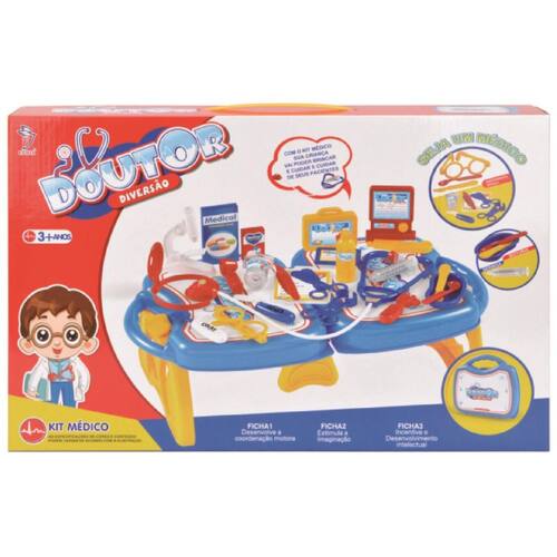 DESCRIÇÃO DO PRODUTO: Venha brincar de ser um médico ou médica com a Maleta Médica São vários acessórios e uma maleta para você levar onde quiser. A maleta se transforma em uma mesinha.