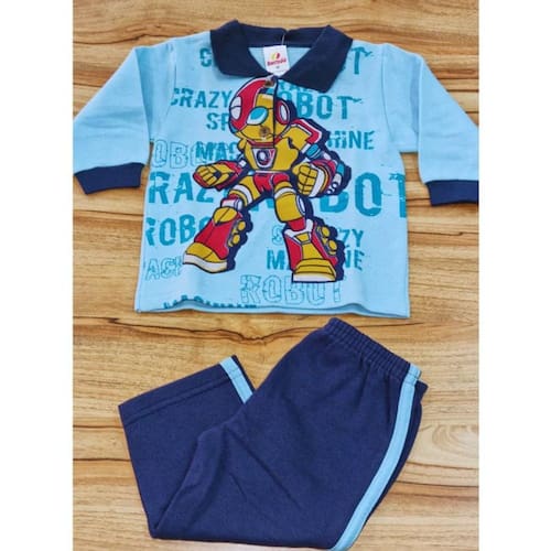 Ele é composto por blusa de manga longa e calça confortável, ambos confeccionados em tecido macio e quentinho, que garante liberdade de movimento e aconchego para brincar, passear ou ir à escola.