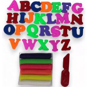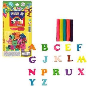 Kit massinha com letras infantil de brinquedo. Contém massinha com seis cores , letras 25 peças e um faquinha de brinquedo. Produto não é tóxico. Recomendado para crianças acima de 3 anos. INMETRO: 00300/2002