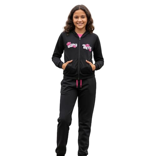 Conjunto infantil de moletom composto por blusa com capuz e fechamento em zíper, acompanhada de calça com cintura elástica e cordão decorativo. Produzido em tecido macio e confortável, é ideal para manter aquecimento nos dias frios sem perder a liberdade de movimentos. Modelo moderno e prático, perfeito para escola, passeios e uso diário no inverno.