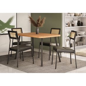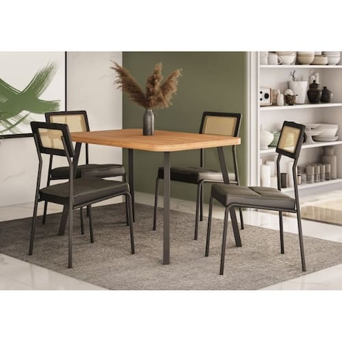 Conjunto Mesa Stellar com 4 Cadeiras Lux Grafite / Preto