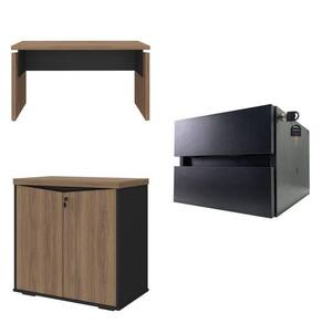 O gaveteiro suspenso possui chave para travamento das gavetas, corrediças telescópicas e pode ser instalado em qualquer posição da mesa, oferecendo praticidade no dia a dia. O balcão conta com 2 portas com chave, prateleira interna ajustável, tampo em Tamburato de 37 mm e traseira revestida, permitindo versatilidade na disposição do ambiente e garantindo durabilidade e funcionalidade ao conjunto. Acabamento: BP Altura do Conjunto: 75.0 cm Ambiente: null Ambiente Principal: Escritório Cor: Nogal / Preto Informação Complementar: 1x Gaveteiro Suspenso com 2 Gavetas para Fixar sob Tampo Preto Largura: 32.6 Altura: 26.2 Peso: 5.02 Profundidade: 38.5 Necessita Montagem: Sim