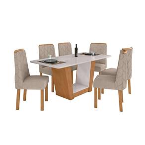 O conjunto de mesa Apogeu de 170cm com tampo de vidro e 6 cadeiras Apogeu é uma opção refinada e funcional para a sua sala de jantar. A mesa, com seu tampo de vidro, adiciona um toque de sofisticação ao ambiente, enquanto sua estrutura robusta garante estabilidade. As seis cadeiras Astrid, com design contemporâneo e estofamento confortável, proporcionam estilo e conforto durante as refeições. Juntos, criam um espaço convidativo e elegante para encontros sociais e refeições em família, combinando praticidade e elegância em uma sala de jantar bem equipada. Medida da Mesa (A x L x P): 78cmx170cmx90cm Peso da Mesa: 59,73 kg Mesa suporta até: 40 kg Acabamento da Cadeira/Banco: Pintura Acabamento da Mesa: Pintura UV Acompanha Manual de Instalação: Sim Almofada do assento: Fixa Ambiente Principal: Sala de Jantar Cadeira/Banco estofada: Encosto e Assento Estofados Cadeira/Banco suporta até: 120 kg Complexidade da Montagem: Alta: deve ser montado por um montador especializado Cor: Amêndoa Clean/Off White/ Bege Cor da Base: Marrom Cor do Produto: Amêndoa Clean/Off White/ Bege Cor do Tampo: Bege Cor Secundária: Marrom De Canto (Canto Alemão): Não Design da Base: Retangular Enchimento do Assento: Espuma D-20 Enchimento do Encosto: Espuma D-18 Escala de Brilho: Fosco Espessura do Tampo: 29 mm Espessura do Vidro: mm Estrutura do Assento: MDF /MDP 25mm Estrutura do Encosto: MDF Formato do Tampo: Retangular Itens Inclusos: 1 Mesa com 6 Cadeiras, Kit Ferragens e Manual de montagem Linha ou Coleção: Apogeu Manual de Montagem e Instalação: https://product-hub-prd.madeiramadeira.com.br/905986/documents/7710c8a9-eb75-4651-9657-3f290cd8c3512C7020COM20CADEIRA20ASTRID.pdf Material da Base da Mesa: MDF/MDP Material da Estrutura da Cadeira: MDF Material do Tampo: Vidro/MDF Material Principal: MDF/MDP Material Principal das Cadeiras/Bancos: MDF Medida da Cadeira/Banco (A x L x P): 104cmx46,5cmx60 Medida do Tampo (L x C x E): 170cmx90cmx29mm Mesa Dobrável: Não Mesa Extensível: Não Necessita Montagem: Sim Origem do Produto: Nacional Peso da Cadeira/Banco: 9,16 kg Possui Apoio para Braços: Não Possui Apoio Para os Pés: Não Possui Prateleiras: Não Possui Rodízio: Não Possui Suporte Giratório: Não Possui Vidro: Sim Quantidade de Cadeiras: 6 Quantidade de Lugares: 06 Recomendações de Uso, Manutenção e Limpeza: Limpar com flanela limpa e seca. Não usar produtos abrasivos. Revestimento da Cadeira/Banco: Linho Sistema de Montagem: Parafusos Tipo de Assento: Fixo Tipo de Encosto: Fixo