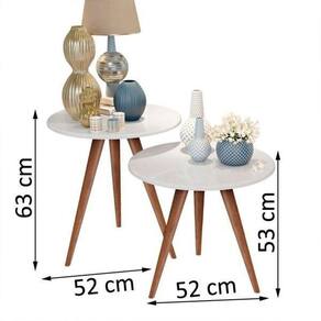O Conjunto de Mesas Laterais Isa é perfeito para quem deseja um toque moderno e sofisticado no ambiente. Com design retrô e pés de madeira, essas mesas são ideais para salas de estar, quartos e espaços decorativos. Seu tampo produzido em MDF de 15mm e acabamento refinado proporcionam durabilidade e estilo, tornando-as um destaque na decoração.