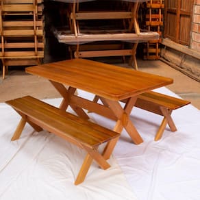 Móveis de Madeira Eucalipto são aqueles que, como o nome diz, são feitos da madeira pura, sem adição de fibras sintéticas ou aglomerados.Eles em sua natureza são mais resistentes e costumam ser bem mais pesados.São mais resistentes a danos como riscos e arranhões, e também podem ser recuperados facilmente.Para os encontros de família do final de semana, nada melhor do que contar com este belíssimo conjunto de mesa de Eucalipto.Esse conjunto é produzido em madeira de Eucalipto maciço, de origem de reflorestamento.Já sua largura de 2 metros acomoda 8 pessoas tranquilamente, para realizarem as refeições.Além de ser uma mesa rústica com um design ótimo para churrascos, pode se usada para festas e reuniões de familia e amigos.Fabricação em série padronizada, o que assegura uma qualidade superior ao produto!Bancos divididos, maior comodidade e muito mais resistência!Acabamento em selador cerejeira, para proteger e embelezar ainda mais o móvel, proporcionando grande durabilidade ao conjunto.Valorize ainda mais o seu ambiente com este lindo conjunto rústico de madeira maciça.MEDIDAS::: Mesa: Comprimento: 2,00 m | Altura 0,75 m | Profundidade 0,80 m | Peso: 35 Kg:: Banco: Comprimento: 2,00 m | Altura 0,41 m | Profundidade 0,30 m | Peso: 15 KgPRINCIPAIS CARACTERÍSTICAS::: Produzido em madeira maciça de Eucalipto Grandis Reforçado:: Toda a Estrutura tanto da mesa quando dos bancos tem 3cm de espessura. Móvel Extremamente robusto e resistente!:: Peso suportado: Mesa 400 Kg | Banco 400 Kg:: Selador cerejeira, que proporciona uma camada de proteção muito mais resistenteMONTAGEM:Extremamente simples, apenas desmontamos os pés para evitar danos no transporte. Montagem por conta do cliente.OBSERVAÇÕES IMPORTANTES::: As imagens são meramente ilustrativas não acompanhando objetos de enfeites e eletros.:: Todos os produtos vão desmontados e embalados.:: Os móveis pode ficar em área externa desde que tenha uma cobertura de proteção, caso contrário, poderá haver descoloração.:: Todo o produto contém manual de montagem.:: Ao receber o produto verifique as condições da embalagem, havendo algum dano não assine o comprovante de recebimento, entre em contato conosco para orientações.:: Confira as dimensões do produto e certifique-se de que passarão normalmente por supostos elevadores, portas, escadas ou corredores de sua moradia.:: As cores do produto apresentadas podem sofrer variações de acordo com a resolução do monitor, iluminação do ambiente ou sua percepção visual.Mesas para Churrasco é uma empresa inovadora no segmento.Aliamos nossa grande experiência na produção de móveis ao comércio eletrônico, para oferecer um amplo estoque de modelos diferenciados, com qualidade, design e durabilidade.Utilizamos apenas matéria prima certificada e proveniente de fontes responsáveis.