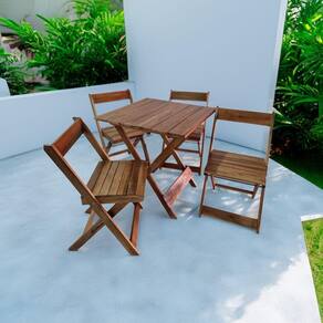 Conj Mesa 4 Cadeiras Dobráveis Em Madeira Para Churrasqueira Mel