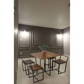 Jogo de mesa com estrutura em aço resistente 70 cm x 70 cm com 4 cadeiras estilo nobre. Por serem com pintura eletrostática, fica fácil o manuseio sem arranhões, valorizando o seu ambiente.