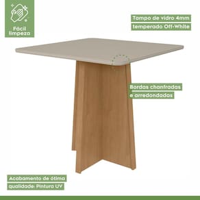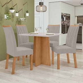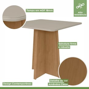A mesa Celebrare de 90cm com vidro é uma peça elegante e versátil, complementada por quatro cadeiras Apogeu. Com um design contemporâneo, a mesa possui um tampo de vidro que proporciona uma sensação de leveza, enquanto sua estrutura robusta garante durabilidade e estabilidade. As cadeiras Apogeu oferecem conforto com seu estofamento e acabamento de alta qualidade. Juntas, criam um espaço convidativo para reuniões familiares e jantares com amigos, combinando estilo e funcionalidade. Medida da Mesa (A x L x P): 78,5cmx90cmx90cm Peso da Mesa: 28,46 kg Mesa suporta até: 40 kg Acabamento da Cadeira/Banco: Pintura Acabamento da Mesa: Pintura UV Acompanha Manual de Instalação: Sim Almofada do assento: Fixa Ambiente Principal: Sala de Jantar Cadeira/Banco estofada: Encosto e Assento Estofados Cadeira/Banco suporta até: 120 kg Complexidade da Montagem: Média: pode ser montado por mais de uma pessoa e/ou necessite de maior conhecimento para montagem Cor: Amêndoa Clean/Off White/Capuccino Cor da Base: Marrom Cor do Produto: Amêndoa Clean/Off White/Capuccino Cor do Tampo: Bege Cor Secundária: Marrom De Canto (Canto Alemão): Não Design da Base: Em X Enchimento do Assento: Espuma D-20 Enchimento do Encosto: Espuma D-18 Escala de Brilho: Fosco Espessura do Tampo: 22 mm Espessura do Vidro: mm Estrutura do Assento: MDF/MDP 25mm Estrutura do Encosto: MDF Formato do Tampo: Quadrado Itens Inclusos: 1 Mesa com 4 Cadeiras, Ferragens e Manual de montagem Linha ou Coleção: Celebrare Manual de Montagem e Instalação: https://product-hub-prd.madeiramadeira.com.br/912565/documents/34b89d3a-4bfd-4c37-beb0-551409eb8ba32480CELEBRARE20COM20APOGEU.pdf Material da Base da Mesa: MDF/MDP Material da Estrutura da Cadeira: MDF Material do Tampo: Vidro/MDF Material Principal: MDF/MDP Material Principal das Cadeiras/Bancos: MDF Medida da Base (A x L x P): 73,6cmx58,2cmx50cm Medida da Cadeira/Banco (A x L x P): 97cmx42cmx59cm Medida do Tampo (L x C x E): 90cmx90cmx22mm Mesa Dobrável: Não Mesa Extensível: Não Necessita Montagem: Sim Origem do Produto: Nacional Peso da Cadeira/Banco: 9,3 kg Possui Apoio para Braços: Não Possui Apoio Para os Pés: Não Possui Prateleiras: Não Possui Rodízio: Não Possui Suporte Giratório: Não Possui Vidro: Sim Quantidade de Cadeiras: 4 Quantidade de Lugares: 04 Recomendações de Uso, Manutenção e Limpeza: Limpar com flanela limpa e seca. Não usar produtos abrasivos. Revestimento da Cadeira/Banco: Veludo Sistema de Montagem: Parafusos Tipo de Assento: Fixo Tipo de Encosto: Fixo