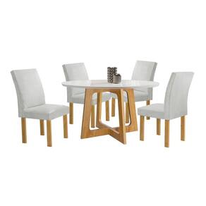 Conjunto Mesa Arizona 120cm com 4 Cadeiras Canela Tampo Redondo Plus com Vidro Cinamomo/Off White/Boucle Gelo - Branco