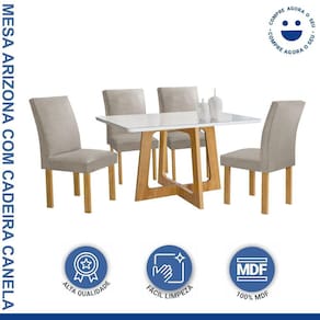 Renove sua sala de jantar com o conjunto Mesa Arizona, acompanhado por quatro cadeiras. A mesa apresenta um design contemporâneo e espaçoso, perfeito para refeições em família e pequenos encontros. As cadeiras oferecem conforto e estilo, criando um ambiente acolhedor para suas refeições. Juntos, este conjunto proporciona uma experiência agradável e elegante à mesa.