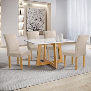 Renove sua sala de jantar com o conjunto Mesa Arizona, acompanhado por quatro cadeiras. A mesa apresenta um design contemporâneo e espaçoso, perfeito para refeições em família e pequenos encontros. As cadeiras oferecem conforto e estilo, criando um ambiente acolhedor para suas refeições. Juntos, este conjunto proporciona uma experiência agradável e elegante à mesa. Medida da Mesa (A x L x P): 79cmx120cmx90cm Peso da Mesa: 46 kg Mesa suporta até: 40.0000 Acabamento da Cadeira/Banco: Pintura Acabamento da Mesa: Pintura UV Acompanha Manual de Instalação: Sim Almofada do assento: Fixa Almofada do encosto: Fixa Ambiente Principal: Sala de Jantar Cadeira/Banco Estofada: Encosto e Assento Estofados Cadeira/Banco estofada: Encosto e Assento Estofados Cadeira/Banco suporta até: 120.0000 codigo_ean: 7909903605189 Complexidade da Montagem: Alta: deve ser montado por um montador especializado Cor: Cinamomo/Off White/Bege Cor do Produto: Cinamomo/Off White/Bege De Canto (Canto Alemão): Não Enchimento do Assento: Espuma D-23 Enchimento do Encosto: Espuma D-20 Escala de Brilho: Fosco Espessura do Tampo: 29 mm Estrutura do Assento: MDF Estrutura do Encosto: MDF Formato do Tampo: Retangular Itens Inclusos: 1 Mesa Arizona com 4 cadeiras e manual de montagem Linha ou Coleção: Arizona Manual de Montagem e Instalação: https://product-hub-prd.madeiramadeira.com.br/895730/documents/6a0bc03a-fbda-498b-9abc-f3e9f6931369SA20DUBAI20CADEIRA20NAPOLE.pdf Material da Base da Mesa: MDF Material da Estrutura da Cadeira: MDF Material do Tampo: Vidro/MDF Material Principal: MDF Material Principal das Cadeiras/Bancos: MDF Medida da Cadeira/Banco (A x L x P): 96,5cmx56cmx44cm Medida do Tampo (L x C x E): 120cmx90cmx2,9cm Mesa Dobrável: Não Mesa Extensível: Não Necessita Montagem: Sim Origem do Produto: Nacional Peso da Cadeira/Banco: 9,1 kg Possui Apoio para Braços: Não Possui Apoio Para os Pés: Não Possui Prateleiras: Não Possui Suporte Giratório: Não Possui Vidro: Sim Quantidade de Cadeiras: 4 Quantidade de Lugares: 04 Recomendações de Uso, Manutenção e Limpeza: Limpar apenas com pano úmido. Revestimento da Cadeira/Banco: Veludo Sistema de Montagem: Parafusos Tipo de Assento: Fixo Tipo de Encosto: Fixo Vidro Temperado: Não