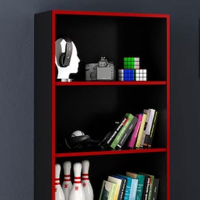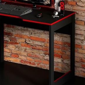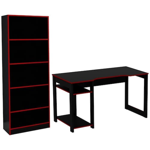 Produto: 01 Mesa 01 Armário | Cõmodo Indicado: Quartos | Tonalidade: Multicolorido Cor: Preto Vermelho