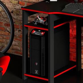 Conjunto Mesa E Armario Gamer Me4141 Me4152 Preto Vermelho Tecno Mobili Preto Vermelho