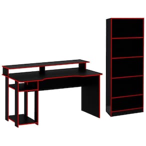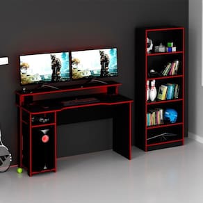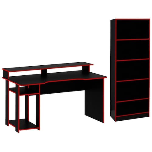 Produto: 01 Mesa 01 Armário | Tonalidade: Multicolorido Cor: Preto Vermelho