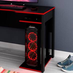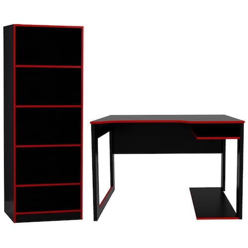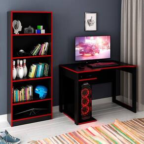 Produto: 01 Mesa 01 Armário | Tonalidade: Multicolorido | Largura: 105,00 Cor: Preto Vermelho