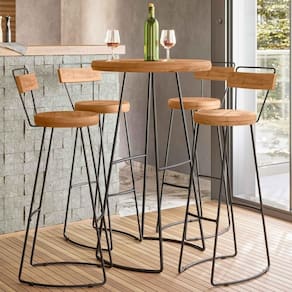 Já pensou em ter um cantinho intimista e moderno em casa? Confira o Conjunto Mesa Bistrô Alta e 4 Banquetas com Encosto Estilo Industrial Aura D09 Peroba, da Mpozenato e surpreenda-se!
