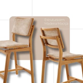 Completando o conjunto, a Banqueta Eva une sofisticacao e conforto em cada detalhe. O encosto estofado oferece apoio agradavel com um toque de requinte, enquanto o assento com espuma de alta densidade, revestido em tecido premium, proporciona conforto duradouro para longos momentos de convivencia. Suas linhas marcantes e acabamento impecavel reforcam o carater exclusivo da peca.