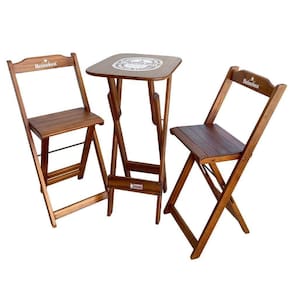 Conjunto Mesa Bistrô Com 2 Banquetas Dobráveis De Madeira Personalizada Hei - Imbuia - Cor: Marrom
