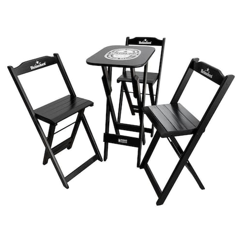 Conjunto Mesa Bistrô Com 3 Banquetas Dobráveis De Madeira Personalizada Hei - Preta