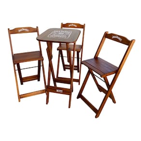 Conjunto Mesa Bistrô Com 3 Banquetas Dobráveis De Madeira Personalizada Jack - Imbuia O Conjunto Bistrô é ideal para bares, restaurantes, estabelecimentos, áreas de lazer e também para sua casa. Em madeira maciça, tornando-os resistentes e duráveis. Seu design permite que esse conjunto seja encaixado em qualquer ambiente, trazendo um toque a mais para seu estabelecimento. Além de sua durabilidade, o que lhe trará conforto para servir seus clientes. Por ser dobrável torna-se mais fácil guardar, manusear e limpar o produto.