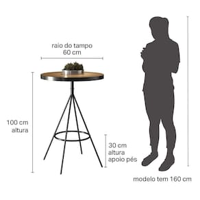 Dimensões: Tamanho da Mesa (L x A x P): 60 x 100 x 60 cm Tamanho da Banqueta (L x A x P): 33 x 96 x 42 cm