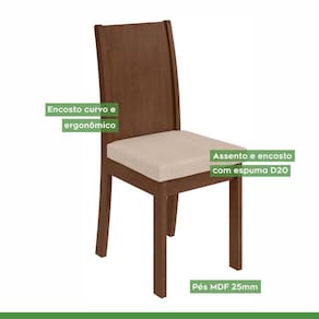 Cadeira Athenas Material da Estrutura; MDF/MDP Escala de Brilho; Fosco Estrutura do Assento; MDP Enchimento do Assento; Altura do Assento ate o chao; Tipo de Assento; Fixo Estrutura do Encosto; MDF Tipo de Encosto; Fixo Suporta Ate; 120kg Sistema de Montagem; Parafusos.