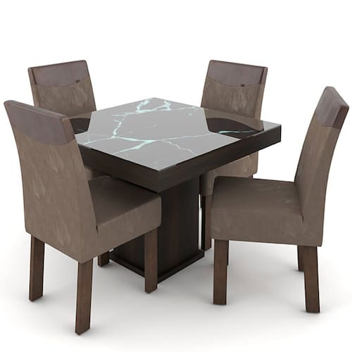 O Conjunto Mesa com 4 Cadeiras Talismã Milão 100x100 traz mais comodidade e sofisticação para a sua Sala de Jantar. A mesa é feita em MDF e possui tampo de vidro. Já as cadeiras são feitas em MDF com madeira de Eucalipto. A mesa e os pés das cadeiras possuem MDF revestido e acabamento fosco, que confere um design moderno e elegante.