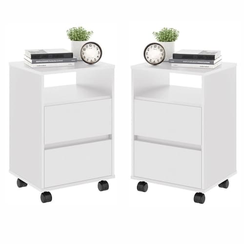 Conjunto Mesa de Cabeceira com Rodízios Nadi Branco