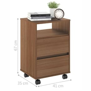 Possui duas gavetas com corrediças telescópicas, e rodízios para melhor locomoção.