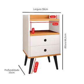Conjunto Mesa De Cabeceira Kit Mesinha Canto Quarto Lateral Cama 2 Gavetas Organizadoras Retrô Quarto - Dream Rpm - Palha
