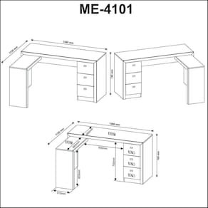 DIMENSÕES: Mesa Escrivaninha em L ME4102: (AxLxP) 74,5 x 136 x 113 cm | Peso: 35 kg Armário ME4110: (AxLxP) 171,5 x 60 x 31,5 cm | Peso: 26,75 kg