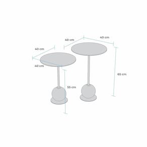 Composto por 02 mesas, tampos redondos com borda invertida, base gota fabricada com usinagem de alta precisão, haste em metal maçiço, disco em metal para melhor sustentação.