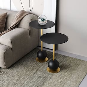 O conjunto de mesas de canto MILÃO, consiste em mesas auxiliares que complementam a decoração do ambiente. São peças práticas e versáteis, com designs que variam entre estilos modernos e clássicos.