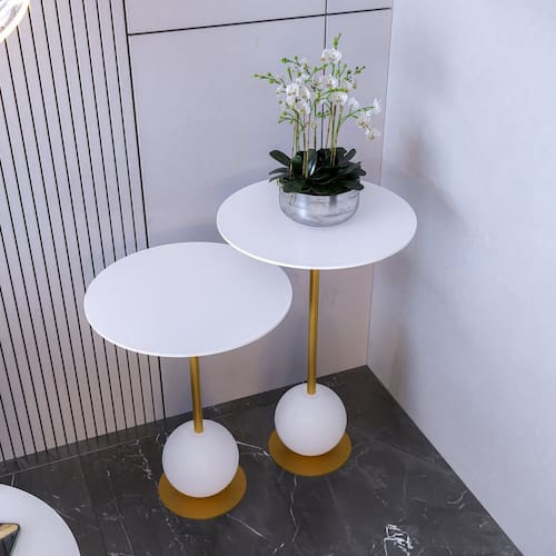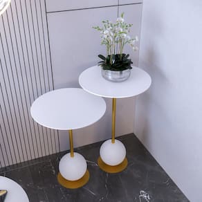 O conjunto de mesas de canto MILÃO, consiste em mesas auxiliares que complementam a decoração do ambiente. São peças práticas e versáteis, com designs que variam entre estilos modernos e clássicos.