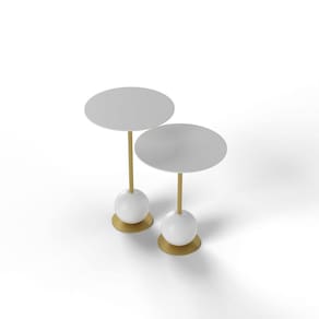 Composto por 02 mesas, tampos redondos com borda invertida, base gota fabricada com usinagem de alta precisão, haste em metal maçiço, disco em metal para melhor sustentação.