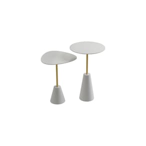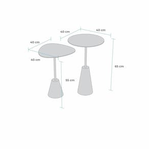Composto por 02 mesas, tampos redondo e organico, com borda invertida, base cone em laka , fabricada com usinagem de alta precisão, haste em METAL dourado maçiço.