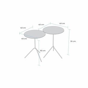 Composto por 02 mesas, tampos redondos, estrutura metalica em aço carbono