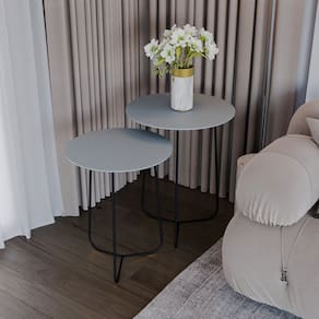O conjunto de mesas de canto TRUDE, consiste em mesas auxiliares que complementam a decoração do ambiente.