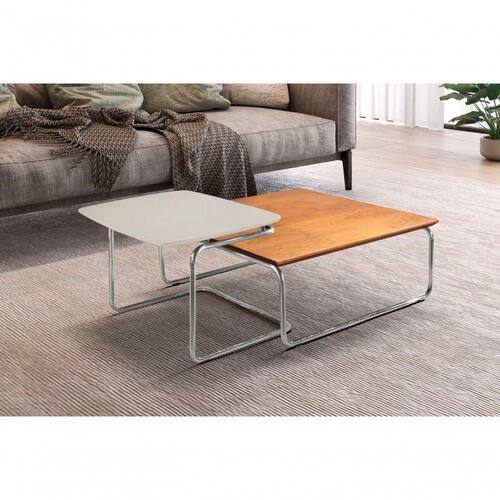 Conjunto Mesa De Centro Kairos Base Cromada Larflex Cor:off White - Branco