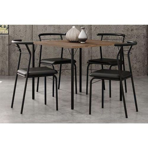 Conjunto: Mesa De Cozinha 1545 Aço C/ Tampo Madeirado 87x87cm E 4 Cadeiras 1708 Preto/legno - Preto/preto - Carraro
