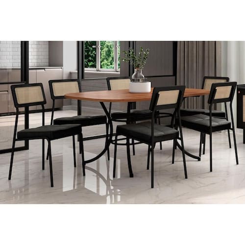 Sala de Jantar Completa 1547 Aço c/ Tampo Madeirado 160x90cm e 6 Cadeiras Lux Freijo/Preto - Preto/Grafite - Preto - Carraro Abaixo segue os produtos do KIT: Sala de Jantar Completa 1547 Aço c/ Tampo Madeirado 160x90cm e 6 Cadeiras Lux Freijo/Preto - Preto/Grafite - Preto - Carraro