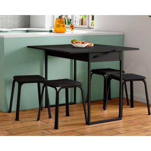 Sala de Jantar Completa 1590 Extensível + 4 Banquetas Preto - Carraro