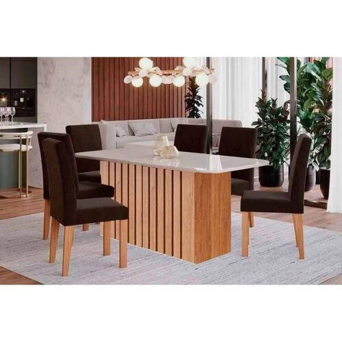 Sala de Jantar Completa Ana Tampo Madeirado c/ Vidro 180x90cm e 6 Cadeiras Maia Cinamomo/Off White - Suede Mascavo Chocolate - Cimol Abaixo segue os produtos do KIT: Sala de Jantar Completa Ana Tampo Madeirado c/ Vidro 180x90cm e 6 Cadeiras Maia Cinamomo/Off White - Suede Mascavo Chocolate - Cimol