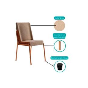 Cadeira Sala de Jantar Hug 1749 Aço Kit 2 Uni Rose/Linho Areia/Courano Caramelo - Carraro