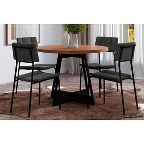 Conjunto: Mesa De Cozinha átria 1594 Aço C/ Tampo Madeirado 100cm E 4 Cadeiras Lou Preto/nogal - Preto/grafite - Carraro