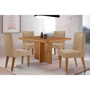 Sala de Jantar Completa Berlim c/ Tampo Madeirado Canto Curvo 90x90cm e 4 Cadeiras Dafne Naturale - Linho Bege - Rufato
