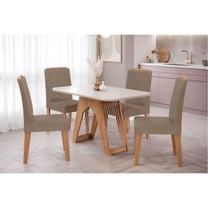 Sala de Jantar Completa Carol Tampo Madeirado c/ Vidro 130x80cm e 4 Cadeiras Clarice Nature/Suede Joli Chocolate - Cimol Abaixo segue os produtos do KIT: Sala de Jantar Completa Carol Tampo Madeirado c/ Vidro 130x80cm e 4 Cadeiras Clarice Nature/Suede Joli Chocolate - Cimol