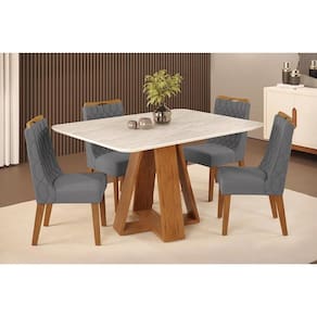 Sala de Jantar Completa Celeste c/ Tampo Madeirado Curvo 120x90cm e 4 Cadeiras Bia Freijo/Quartzo - Suede Lunar - DJ Móveis